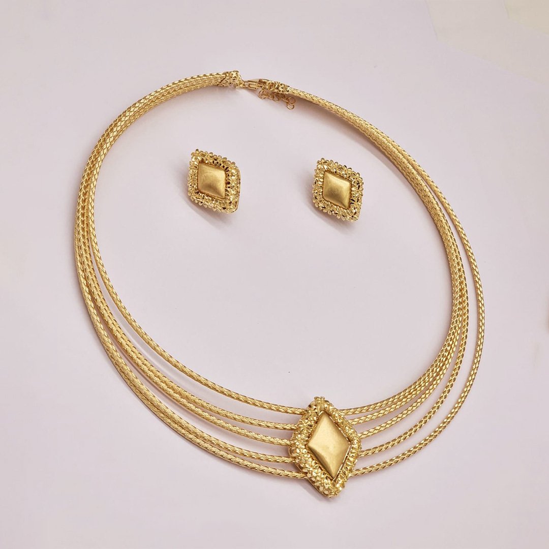 The ElegantRoseJewellery necklace set combines exquisite gold plating with sparkling diamonds, creating a refined and timeless look perfect for special occasions.