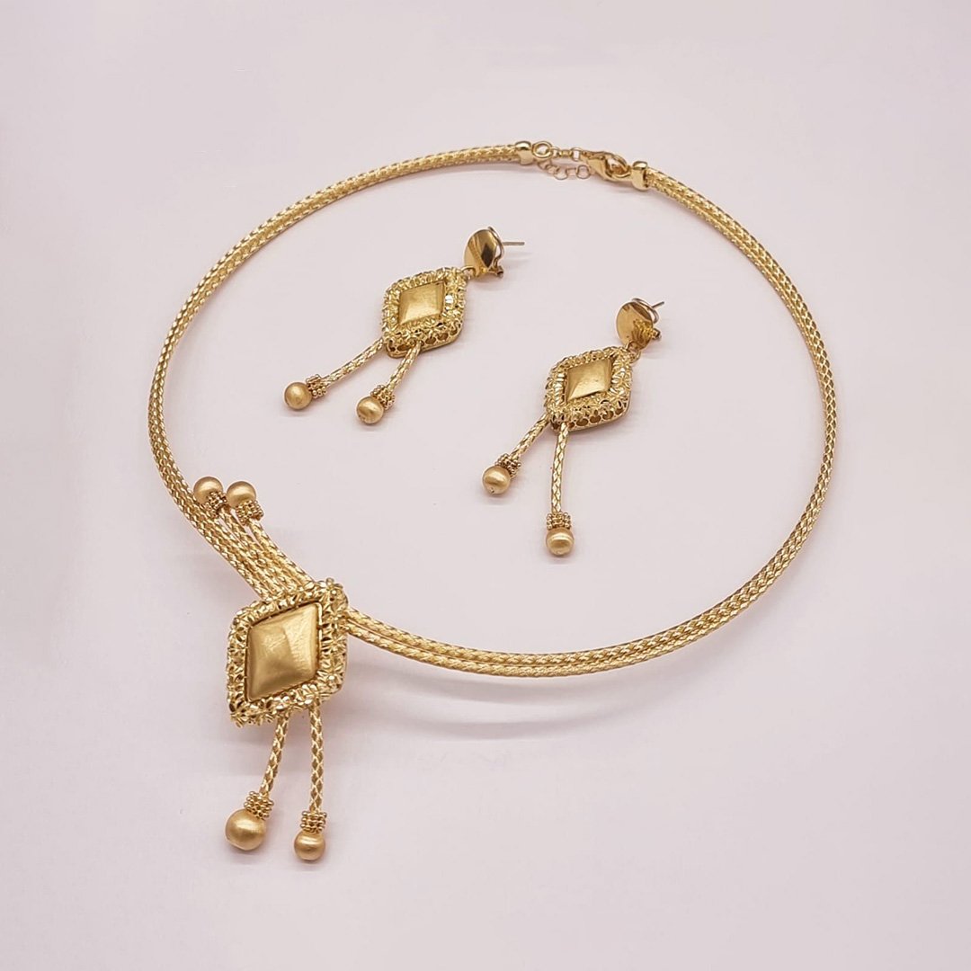 The ElegantRoseJewellery necklace set combines exquisite gold plating with sparkling diamonds, creating a refined and timeless look perfect for special occasions.