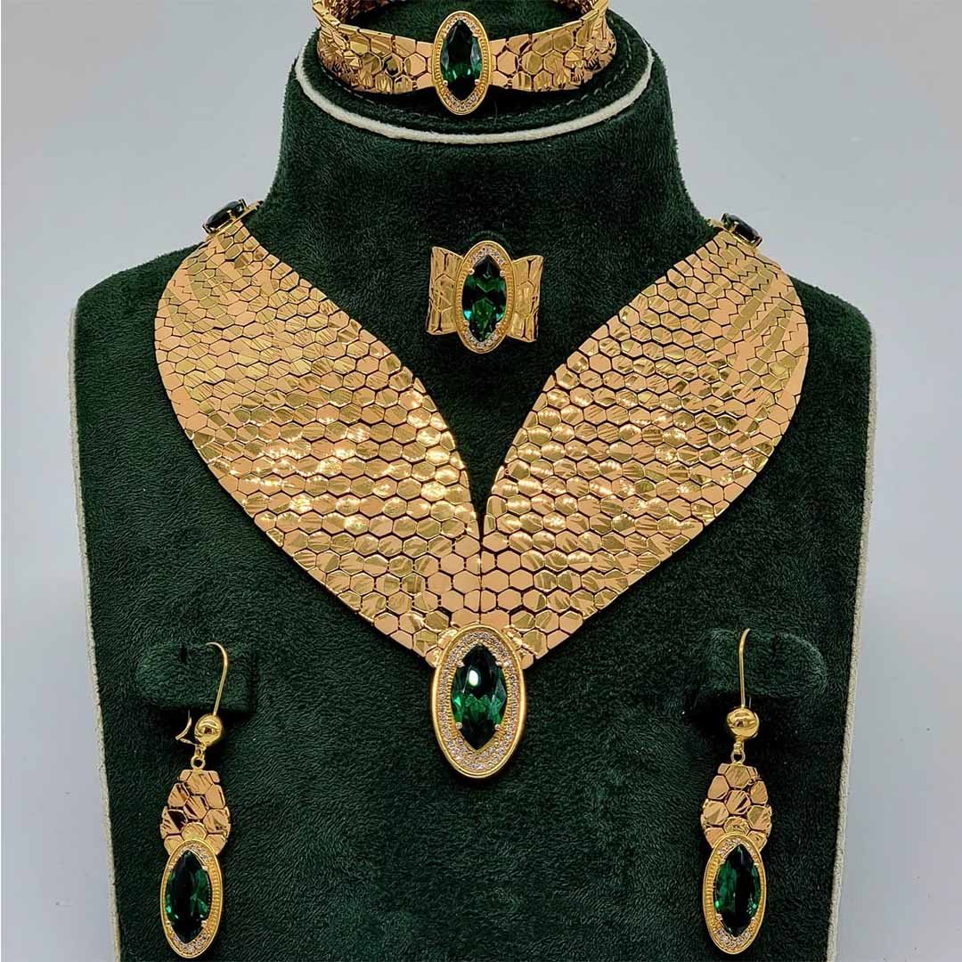 The ElegantRoseJewellery necklace set features a stunning gold plating with intricate designs, ideal for both traditional and modern styles.