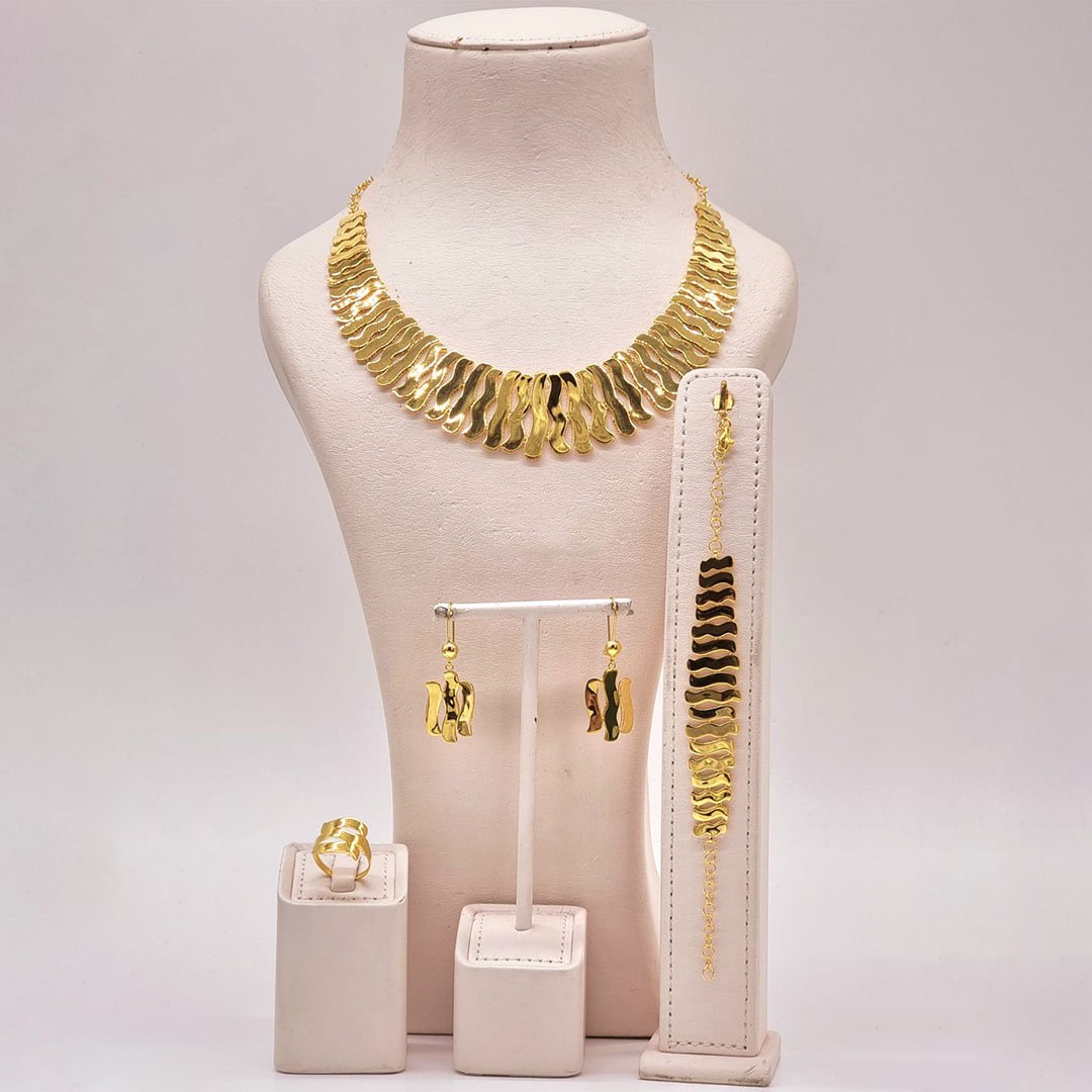 The ElegantRoseJewellery necklace set features a stunning gold plating with intricate designs, ideal for both traditional and modern styles.