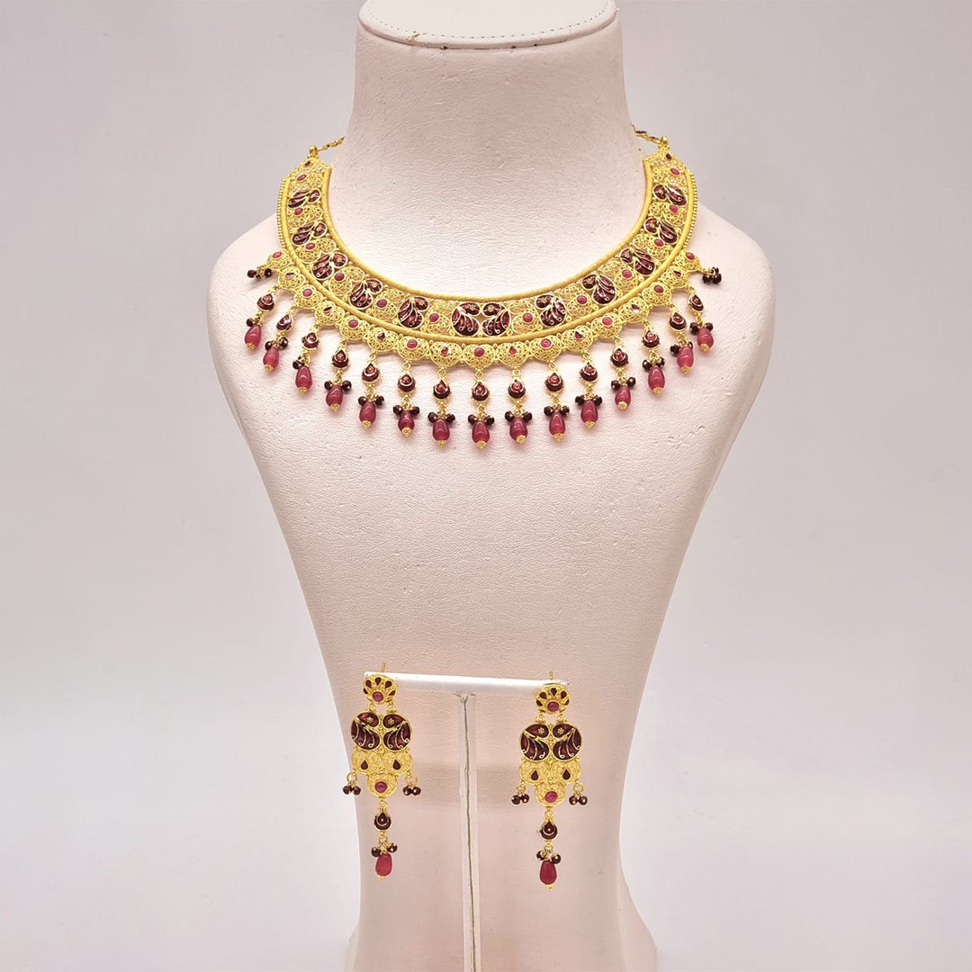The ElegantRoseJewellery necklace set features a stunning gold plating with intricate designs, ideal for both traditional and modern styles.