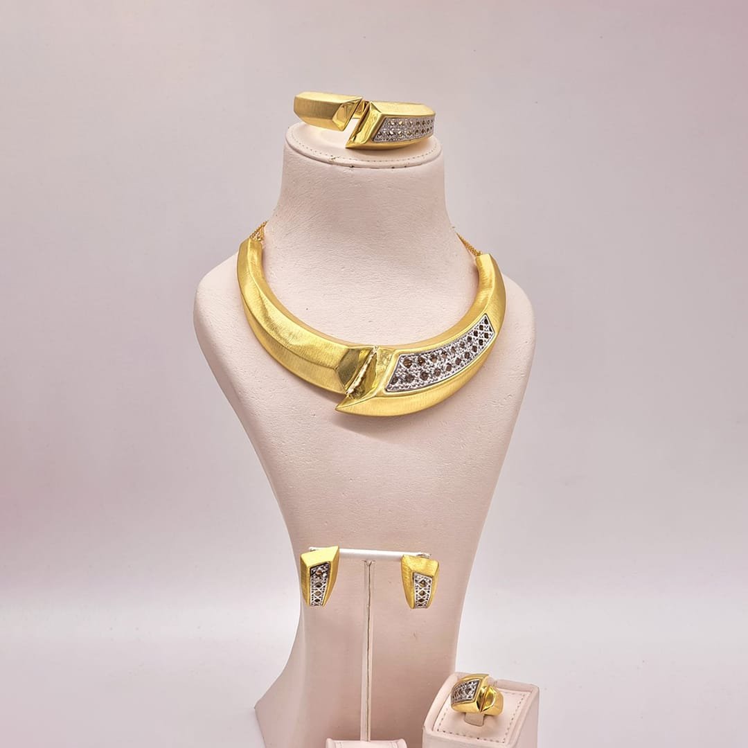 The ElegantRoseJewellery necklace set combines exquisite gold plating with sparkling diamonds, creating a refined and timeless look perfect for special occasions.